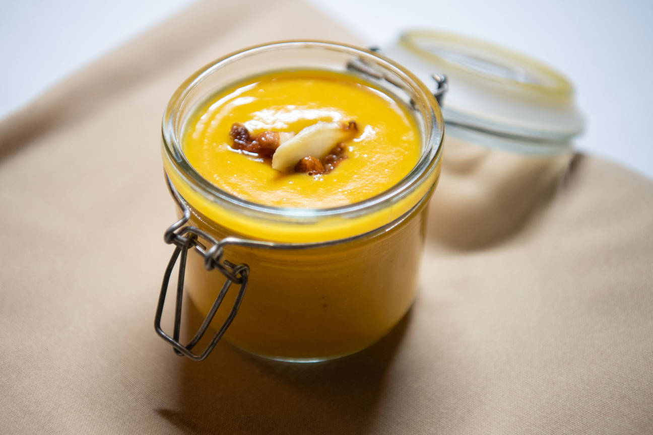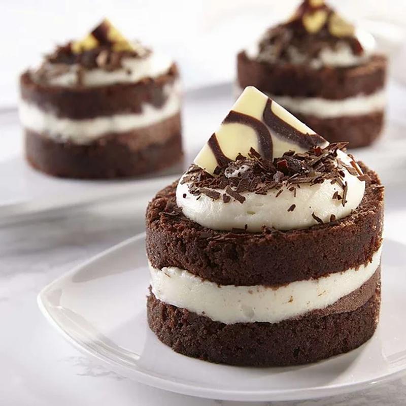 Delicious combination of silky dark, milk and white chocolate creams with a layer of hazelnut crunch, presented in an elegant glass