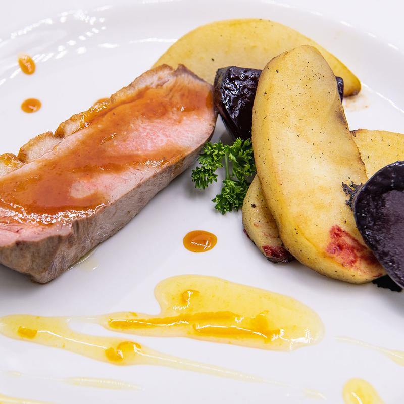 - Sliced Beef Tenderloin With Beef Demi-Glace Sauce
